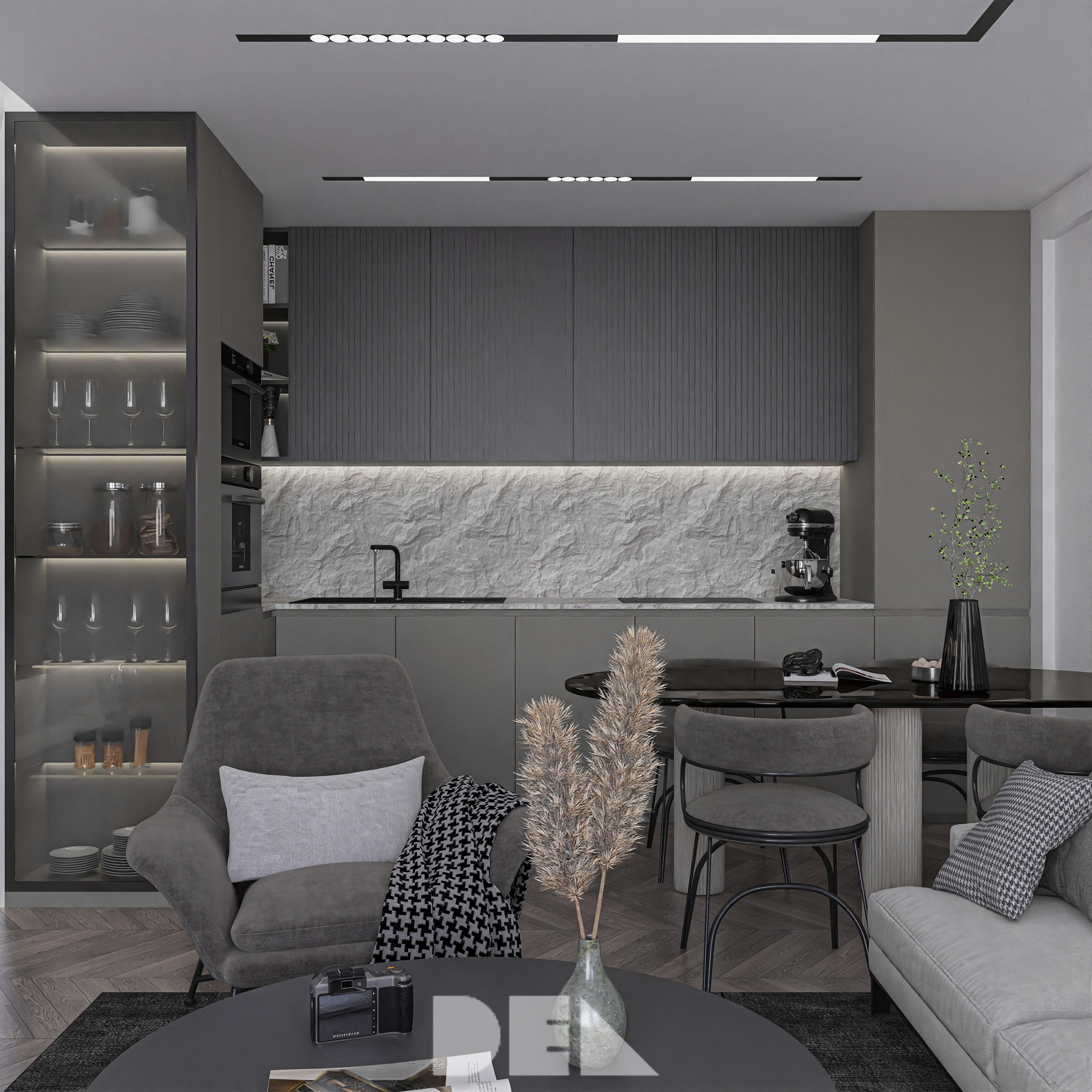 Es ist ein wunderbarer Ort zum Entspannen und zum Genießen einer schönen Zeit mit Freunden und der Familie. Die Küche ist sehr modern und funktional. Die Schränke sind schlicht und bieten viel Stauraum, während die Decke aus hochwertigem Material besteht. Die Küchengeräte sind auf dem neuesten Stand und ergänzen das Gesamtdesign perfekt. Die Farbpalette ist neutral und zeitlos und verleiht der Küche ein elegantes und einladendes Ambiente. Mit ihrem offenen Grundriss und der geräumigen Kochinsel bietet die Küche viel Platz zum Kochen, Essen und Bewirten sowie einen wunderbaren Raum, um kulinarische Kreationen zu kreieren und gemeinsame Mahlzeiten zu genießen.
