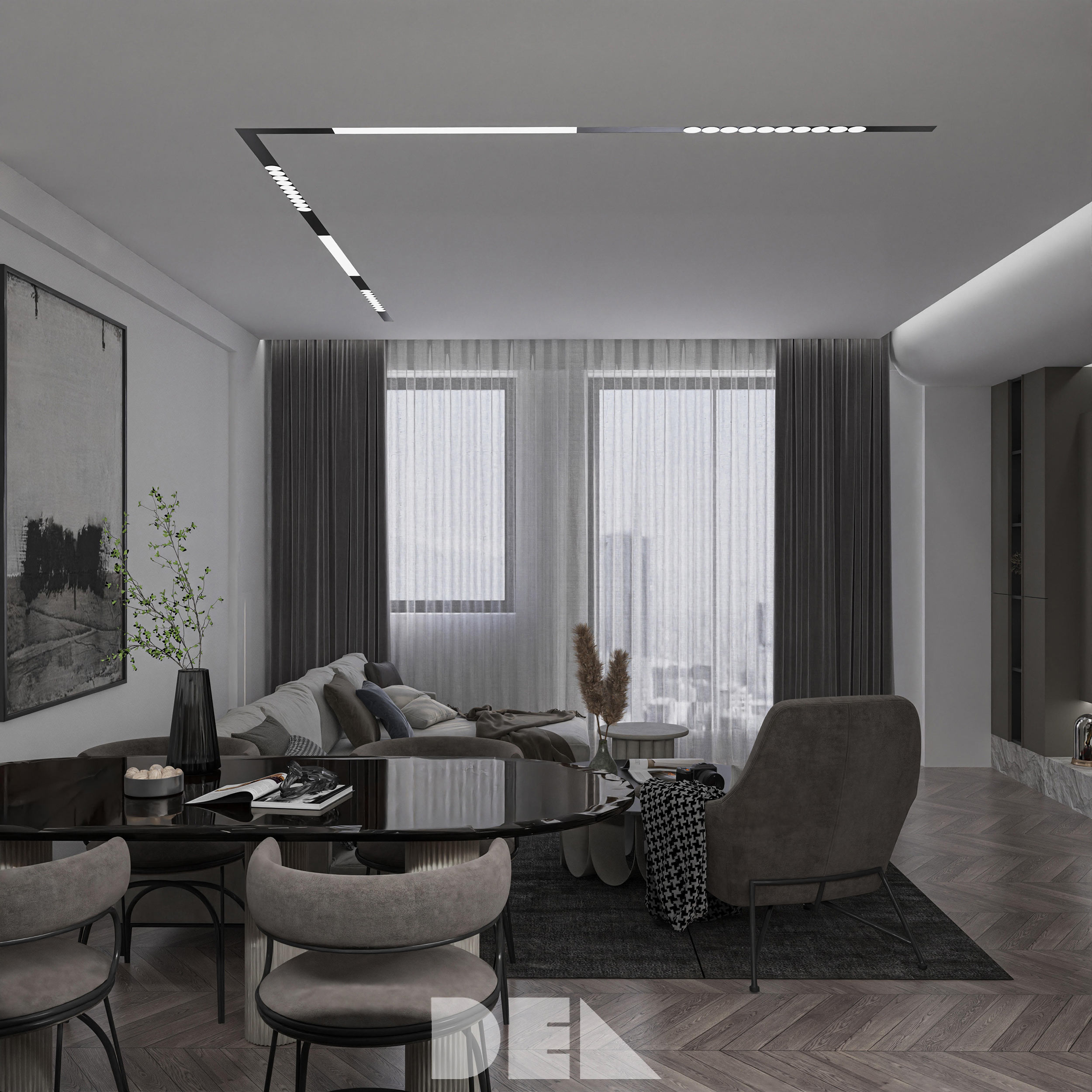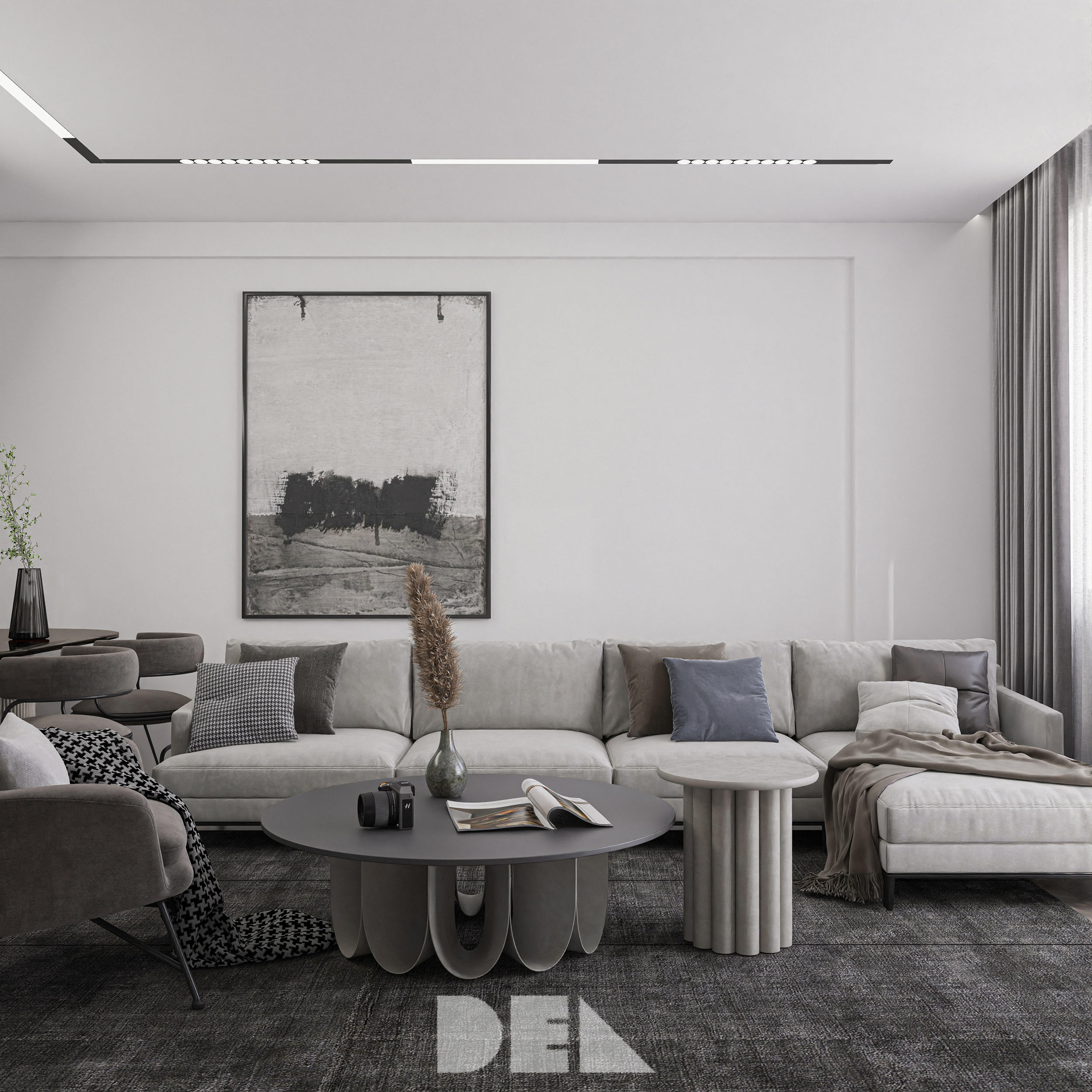 Dieses Wohnzimmer hat eine elegante und moderne Ästhetik.