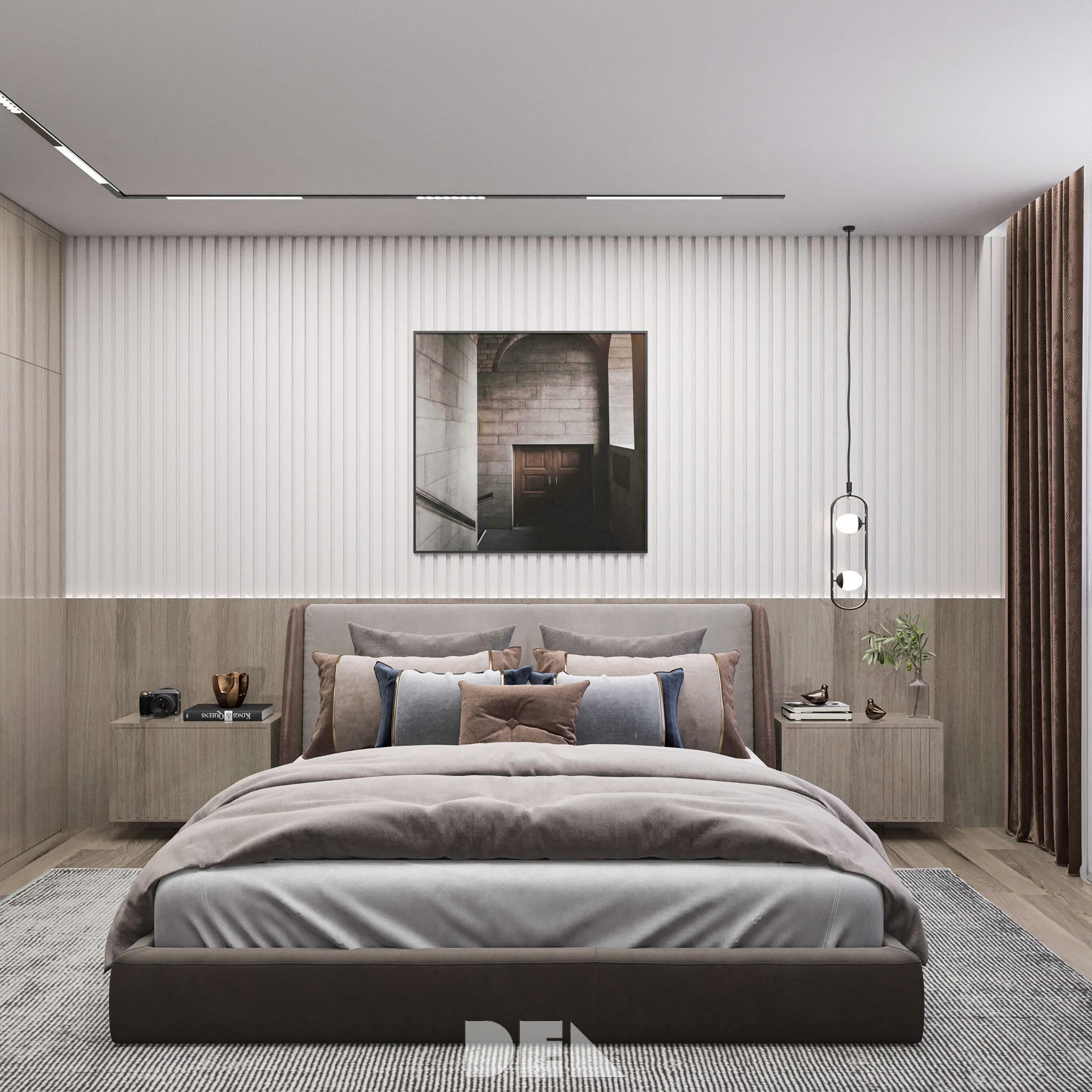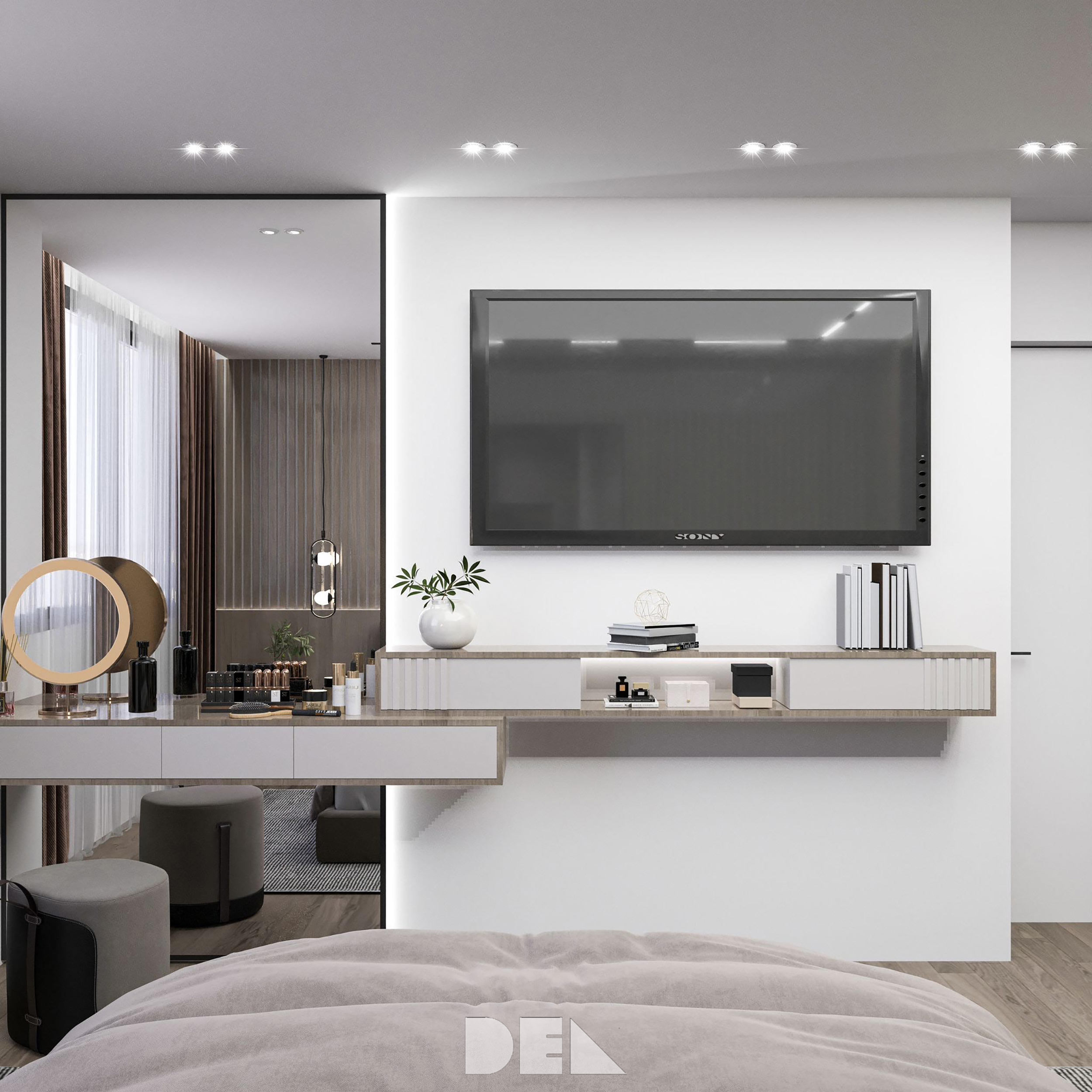 Die Sahara-Textur auf dem TV-Ständer und im gesamten Saal sorgt für ein einzigartiges und interessantes visuelles Erlebnis. Trotz des seriösen Stils der Wohnung sind die Kinderzimmer klein, aber sehr ansprechend und verspielt. Das Kinderzimmer ist unterhaltsam und funktional gestaltet und bietet viel Platz zum Spielen und Lernen. Die Zimmer sind mit hellen Farben und verspielten Mustern dekoriert, die eine fröhliche und einladende Atmosphäre schaffen.